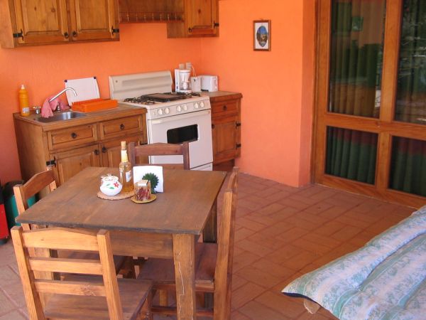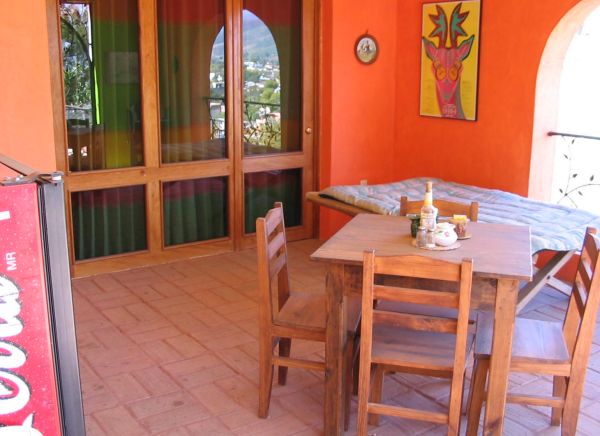 Bedsittingroom, showing futon, TV, settee and windows to view the valley |