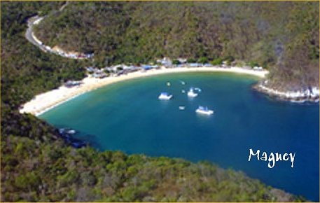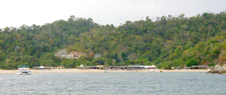 Playa Maguey is 1/4-mile long beach southwest of Santa Cruz, accessible by boat and land, calm waves on the east end, moderate on the west end. Good swimming and snorkeling. Further out, Punta Maguey is a good scuba diving site with walls and caves. To drive to Maguey, take the road to Playa La Entrega. The road winds up to a hilltop then descends to the beaches. You take a right (unmarked) fork to reach Maguey, 4 kms (12/99). |