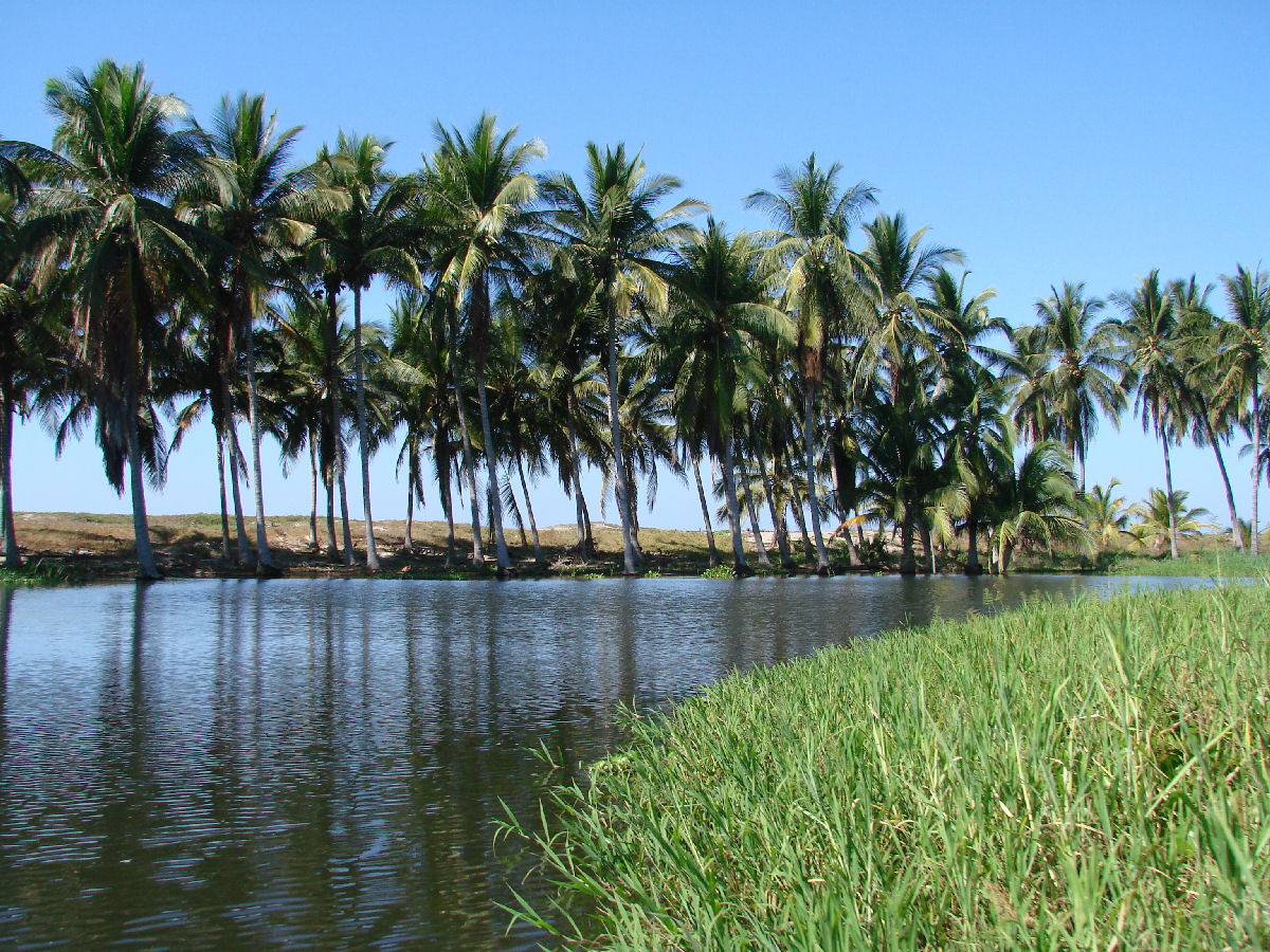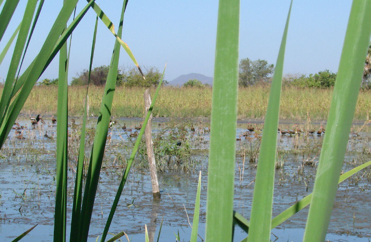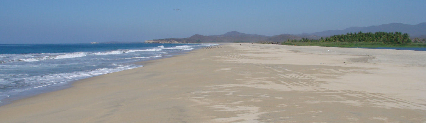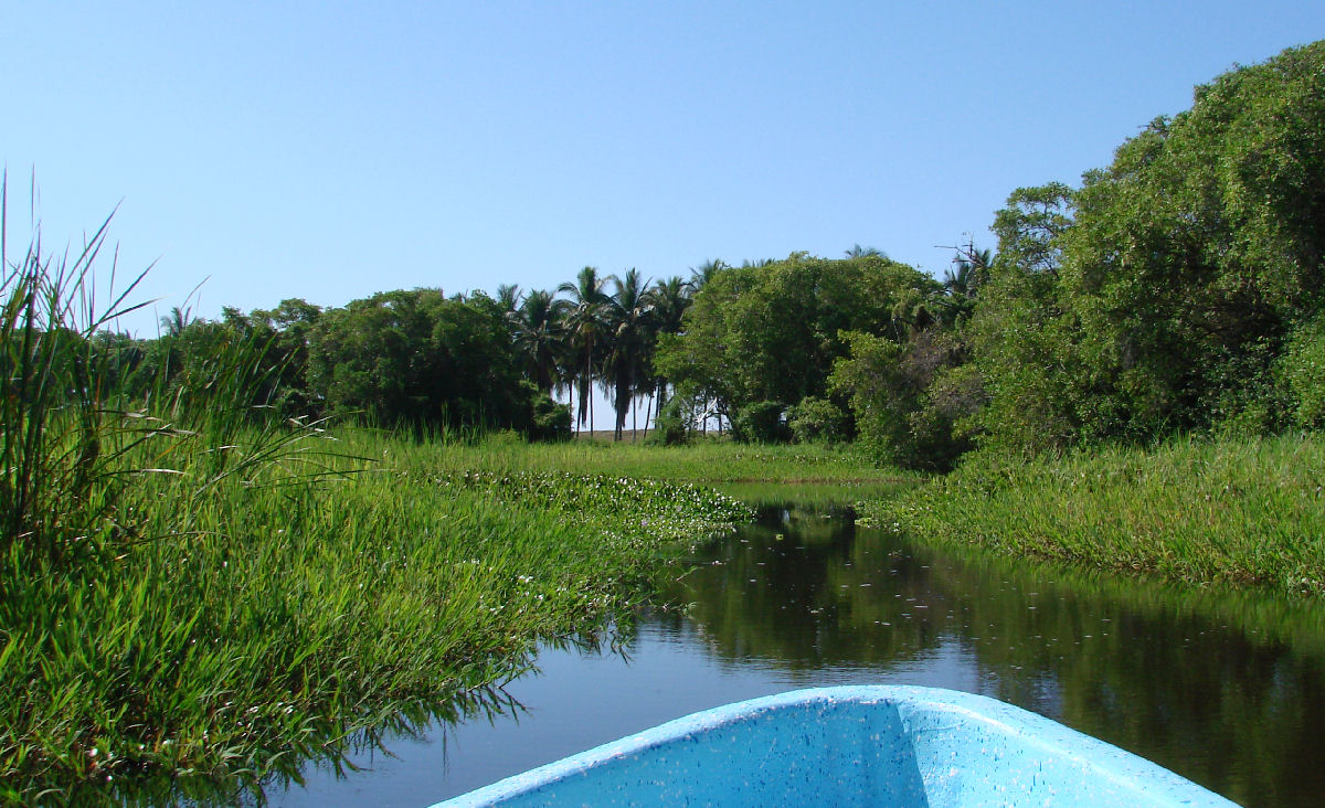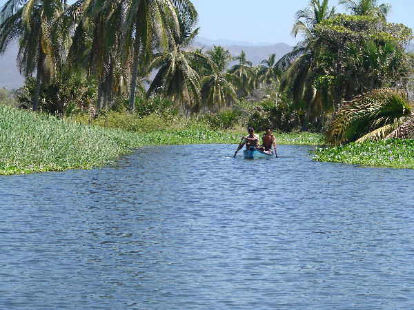 ![]() The freshwater Manialtepec River drops from the mountains bringing fresh-water into the lagoon for 6 months. |