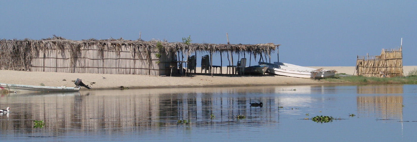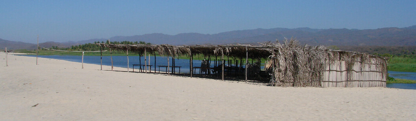 ![]() Restaurant on the barrier beach at Puerto Suelo, lagoon in background |