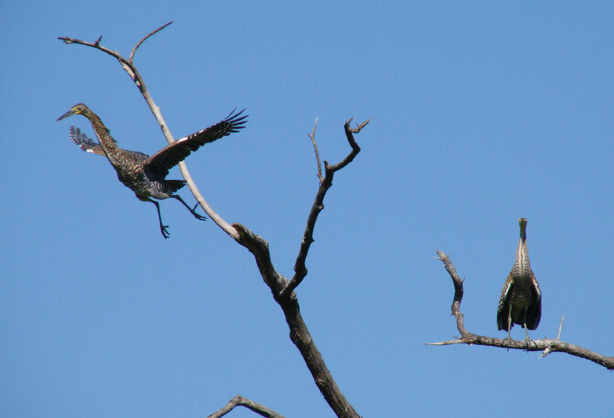 ![]() left - Bare-throated Tiger Heron taking flight; right - courtship display |