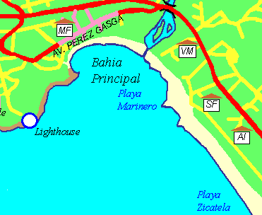 Playa Marinero, a 200-meter long beach, is located between Playa Principal and Playa Zicatela. Convenient to downtown Puerto Escondido, Marinero is a favorite swimming beach and suitable for surfers not yet ready for the perils of Playa Zicatela. Also a nice spot to watch the sunset. Brad's Split Coconut, the popular watering hole and eatery, is located on Playa Marinero. This is where the annual Puerto Escondido Blue's Festival takes place January to March.