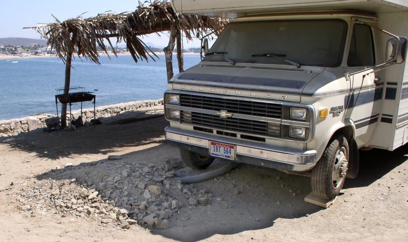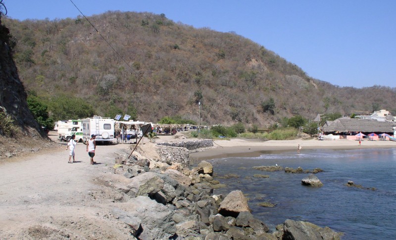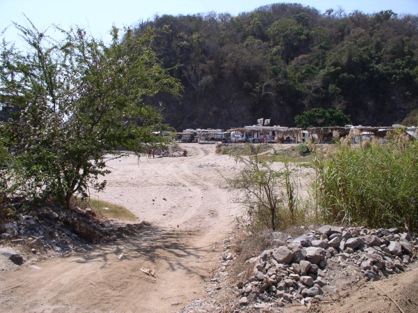 ![]() This is the sewage system typically used here. The sewage line goes into the sand and is held down by a pile of rocks. An open-bottomed container allows the sewage to seep into the sand. The town is aware of this problem and hopefully something will be done to correct it. |