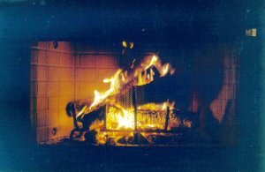 Tom & Nancy celebrate New Years with a fire in the fireplace.