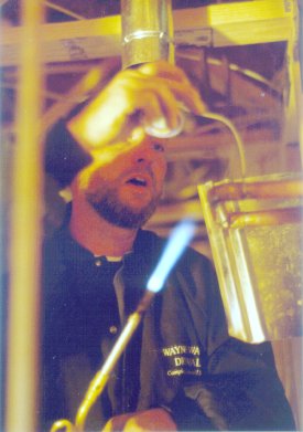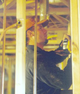 |   | Years of practice coupled with the use of proper materials and equipment are nothing if you don't hold your mouth right. Mike solders connections for the water heater. The drywall jacket is a disguise. |
