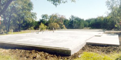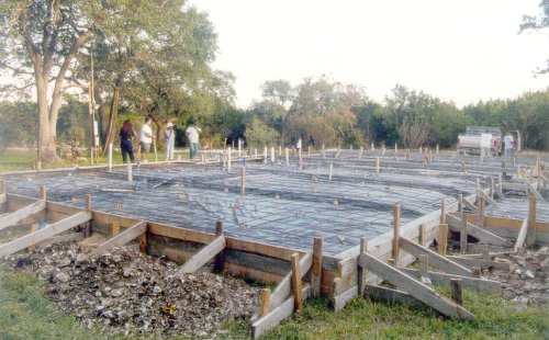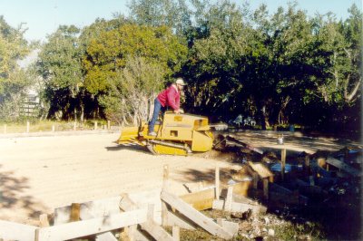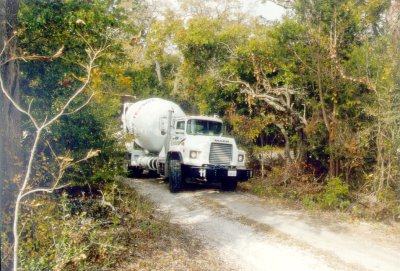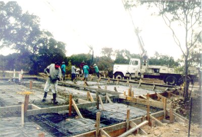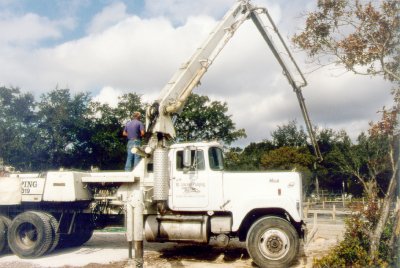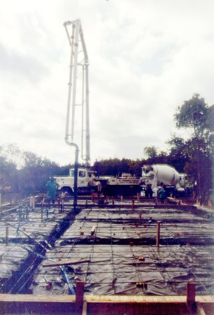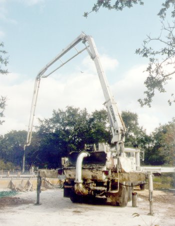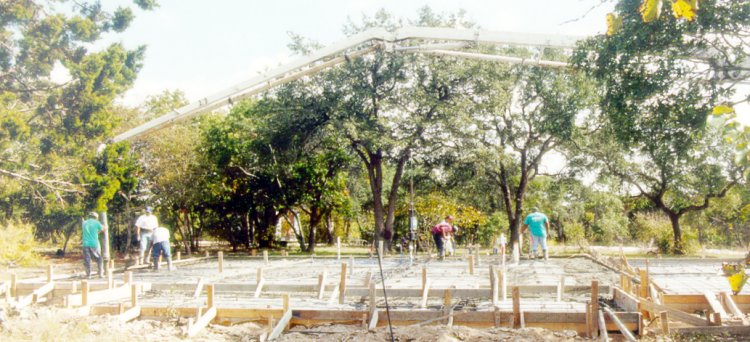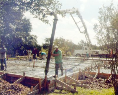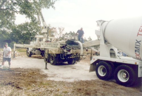 Feeding the concrete pump. Builder, Larry Crabb, at left. |