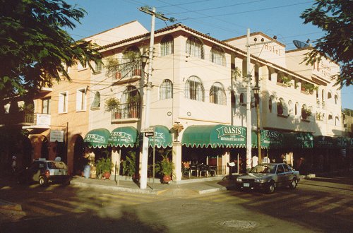 |   | The Oasis restaurant and Hotel Begonias occupy the same building at the southeast corner of the zócalo in La Crucecita. The hotel has large unairconditioned rooms on the second and third floors of the building. There is one small room on the roof with a nice view of the town. The room has a small air conditioner (totally inadequate) featuring cockroaches and sewage odor emerging from the drains. |