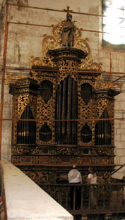 The villagers accompanied us to our next stop, the magnificent 16th century Dominican priory of Yanhuitlan, still under restoration. Inside the church we ascended to the choir loft, where the ornate early 18th century organ has recently been restored to playing condition. Signor Tagliavini inspected the