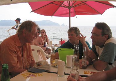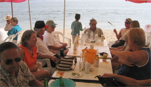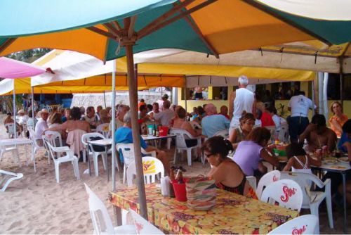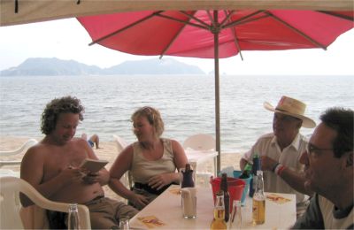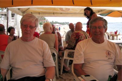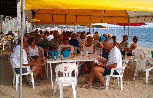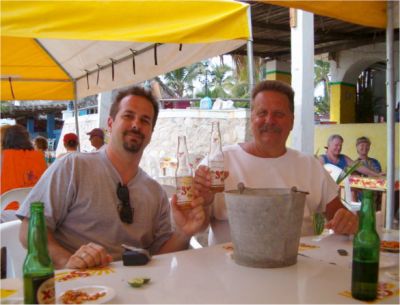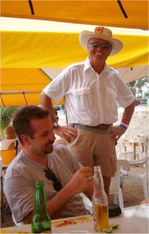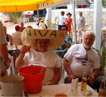 The 2004 Tomzap Party was held at Bigotes Restaurant and Video Bar in Melaque, Jalisco, on February 13th at 2:00 pm. It was an overwhelming success with over 60 in attendance. Furthermore, the management and staff of Bigotes made it happen! They arranged with SOL (Cerveza, Co.) to erect 3 large tents on the beach, and supplied tables and chairs for the party as you will see in the photos. Feel free to provide info for the photo captions tom@tomzap.com
