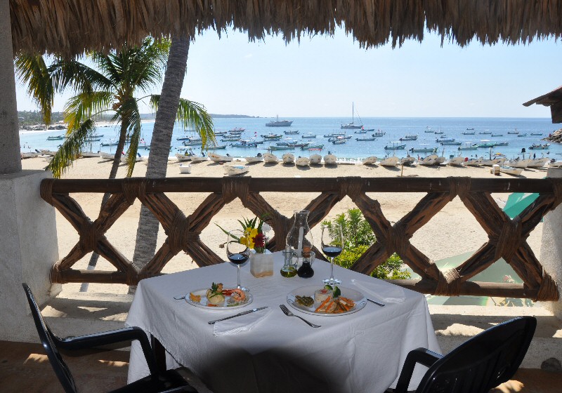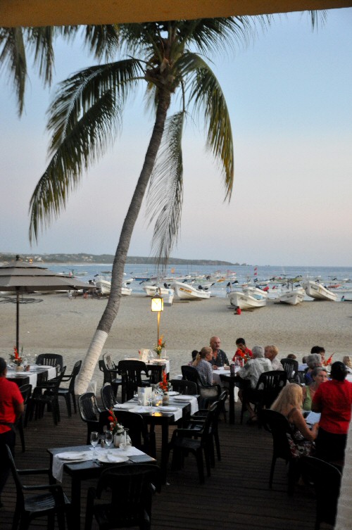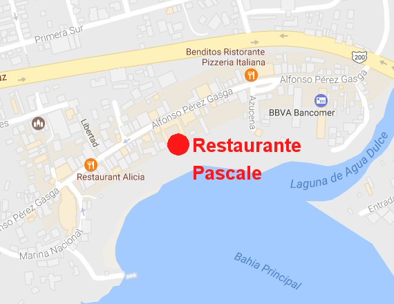 Restaurante Pascale is a bar and grill beach restaurant located on Playa Principal in Puerto Escondido, Oaxaca. The restaurant serves entrees with Mexican and French influences, many of which are prepared on the charcoal grill. The hours are 6:30 pm to 11:00 pm Tuesday through Sunday. Choices include salads, onion soup, seafood, steaks, brochettas of many types, and pasta dishes with homeade pasta and a choice of sauces. Drink choices include limonada, naranjada, tea, coffee, capuccino, iced coffee, a selection of beers, numerous coctails and liqueurs. The homemade desserts include creme brulee, profiteroles with ice cream and chocolate sauce, platanos flameados, and chocolate mousse. The menu is available on Facebook