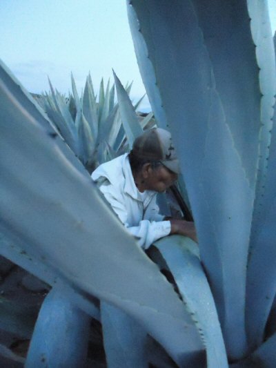 ![]() Abraham extracting aguamiel from the magestic pulquero |