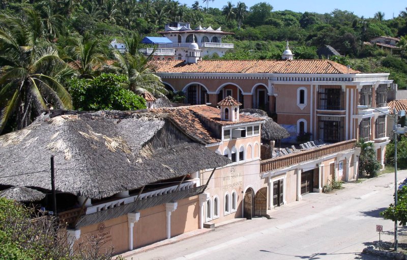 The Hotel Santa Fe is located on Playa Zicatela where it meets Playa Marinero. Hotel Tabuchin is seen in the background. Ceiling fans, air conditioning, TV's available, restaurant, bar, pool, boutique, internet computers. The restaurant is considered the best romantic restaurant in Puerto Escondido according to the Best of Puerto Escondido and is also mentioned for its Mexican food. Popular; both the hotel and restaurant are recommended. Suites and bungalows are also available. Car rentals.