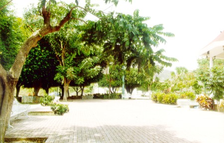 The market at Santa Cruz (above) is located on Boulevard Santa Cruz next to the plaza (left and below) and the marina. They have many shops with a good selection of hand-made items. Prices may be lower than some shops in the La Crucecita and Tangolunda areas. The plaza extends from the market back to Playa Santa Cruz. Restaurant El Huayucan on Playa Santa Cruz is recommended. The Santa Cruz Marina, to the east of the plaza is probably the best place to arrange a reasonably-priced tour of the 7 bays. One of the operators is Prospero Reyes, offers boat tours by panga. 958-40632 (wife, Mariela). Hotel and restaurant listings are on the Huatulco page. |
