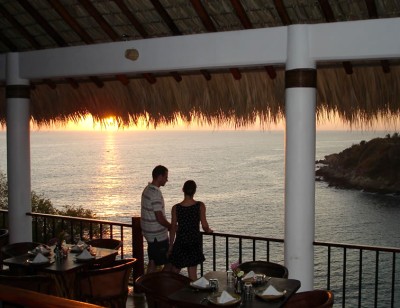 For years the bar at Villas Carrizalillo has been attracting patrons from nearby hotels and condos because of its spectacular view overlooking Playa Carrizalillo, entrancing sunsets, and amiable bartender Ricardo. Owners Amy Hardy and Edward Mitchell have parlayed those pluses, opening Seis Palmas, a remarkable restaurant, with its palapa perched even higher atop the cliff looking out over the ocean and beach.