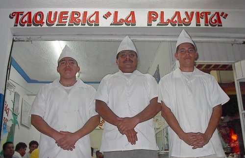 Taquería La Playita used to be near the corner of Av. Oaxaca and 2nd, across from the newsstand. It is now on Av. Raul Gonzalez by the airport. From the Visitors' Comments: "Nobody disputes the fact that Silvio's tacos are the best in the area, perhaps the best in the country!" "Best tacos al pastor I have ever tasted! Taquería La Playita Rules!" |