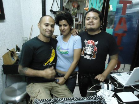 During the course of a 3½ hour interview at Kai's studio, his friends and fellow tatuadores from Mexico City, Daniel (Tuna) Larios and his girlfriend Angélica (Angy) de la Mora, were in the shop working and otherwise serving customers, while for part of the time Kai was out running errands.