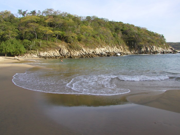 Playa Tejoncito is located at the western edge of Bahía Conejos. It has a 300' gently sloping beach, calm waves, and shallow depth. Good for swimming, snorkeling, diving, and fishing. Accessible by boat.