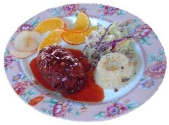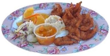 The filete paty, also found at Restaurant Cato, is a creation of Lola's daughter Diana. It's a fish fillet stuffed with shrimp, bell pepper and cheese, breaded and fried, and served with a diablo (hot and sweet) sauce. It's big enough to be shared!