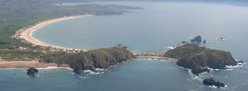 Tenacatita is a small beachfront settlement on the Costalegre (coast of Jalisco) located about 27 miles northwest of Barra de Navidad. A 9km paved road leads from the intersection with coastal highway 200 (GPS 19°20.78'N 104°52.75'W) to Tenacatita. It's 30km from the highway intersection to Melaque. Bring your insect repellant. Just to the west is Playa La Mora.